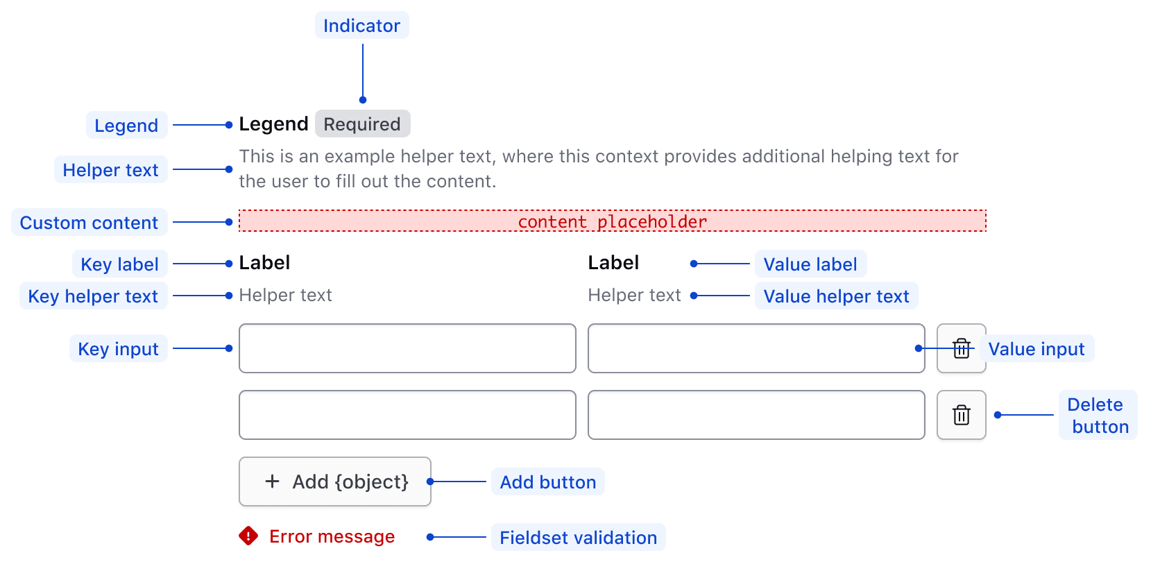 The header for the Key Value Inputs includes a legend, helper text, and a generic content slot.