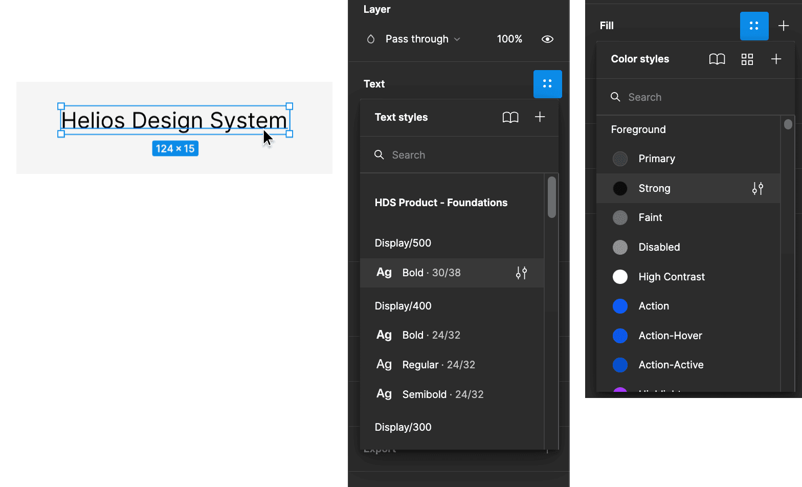 Styles and variables, sometimes referred to as Tokens, allow consistent application of color (as a fill or stroke), typography, and effects within Figma. You can find these in the Product Foundations v2.0 library.
